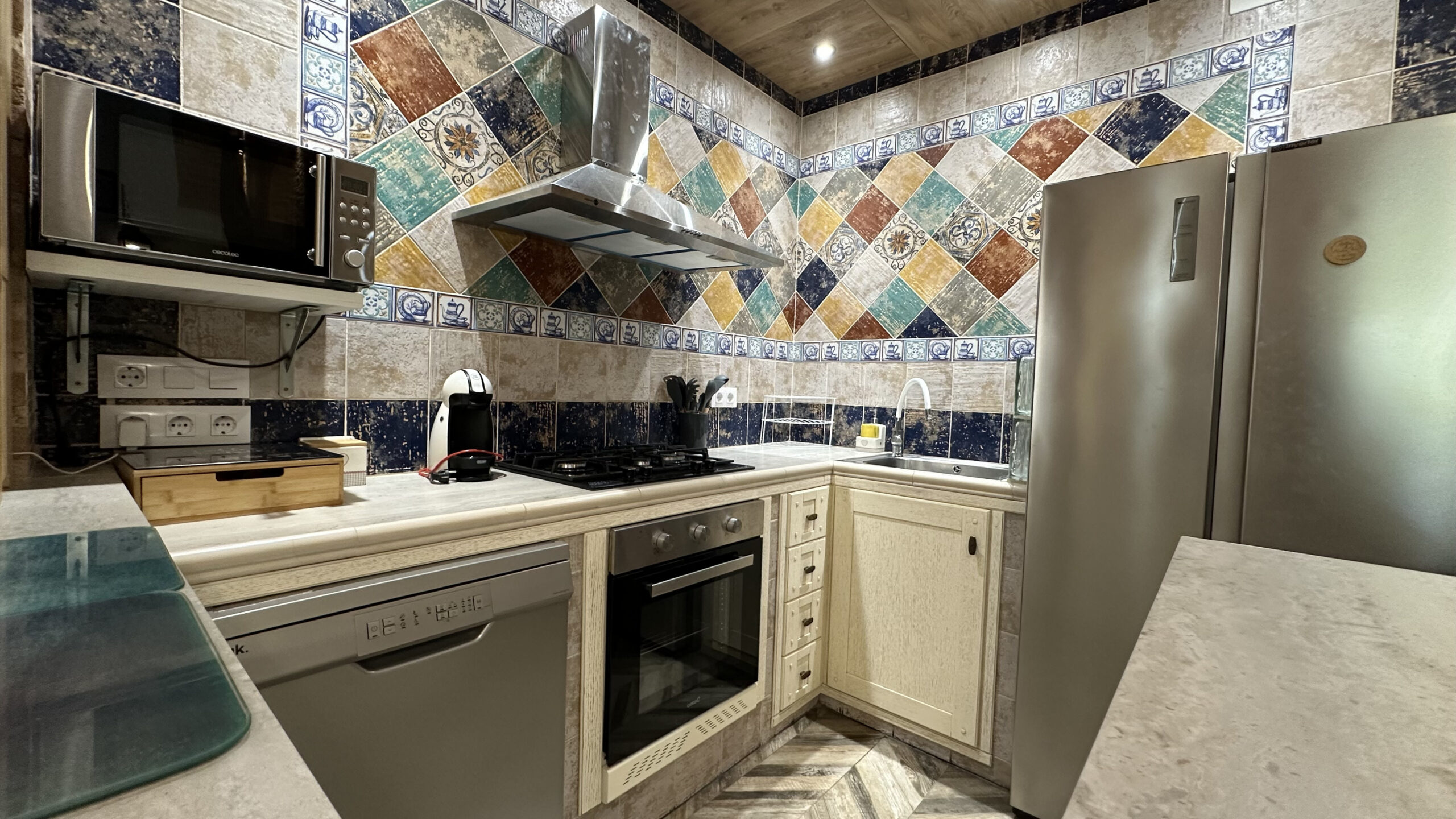 En el corazón de la casa te espera un salón con chimenea, sofás cómodos y espacio para estar todos juntos. La cocina está completamente equipada con todo lo que puedas necesitar: horno, microondas, vitro, lavavajillas, menaje completo y hasta dos tipos de cafetera.